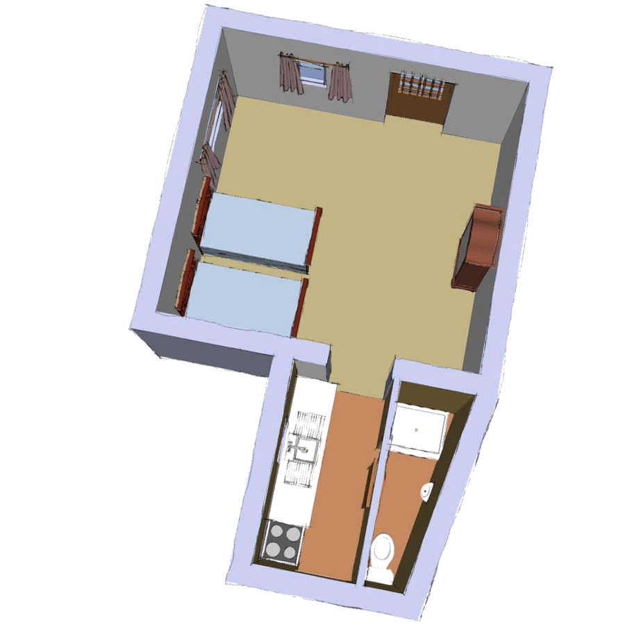 Ideally suited for a couple of Francophiles not taller than 1m92 (bed head and tail boards). The gite has in the past been approved and listed with Sawdays. It’s a 25m2 twin-bedded studio with kitchenette and shower/wc. Hot water by bottle gas fired immersion. The only guest accommodation on-site. Surrounded by old fig trees laced with thick ivy and wild rose.